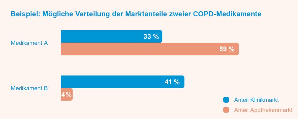 Medikament A hat bei den Niedergelassenen eine große Akzeptanz, schöpft sein Potenzial im Klinikmarkt aber nicht aus. Medikament B kann seine Präsenz im Klinikmarkt nicht auf den Apothekenmarkt übertragen.